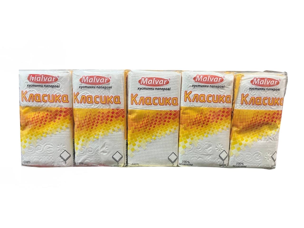 Хустинки паперові одношарові Malvar, 10шт/уп