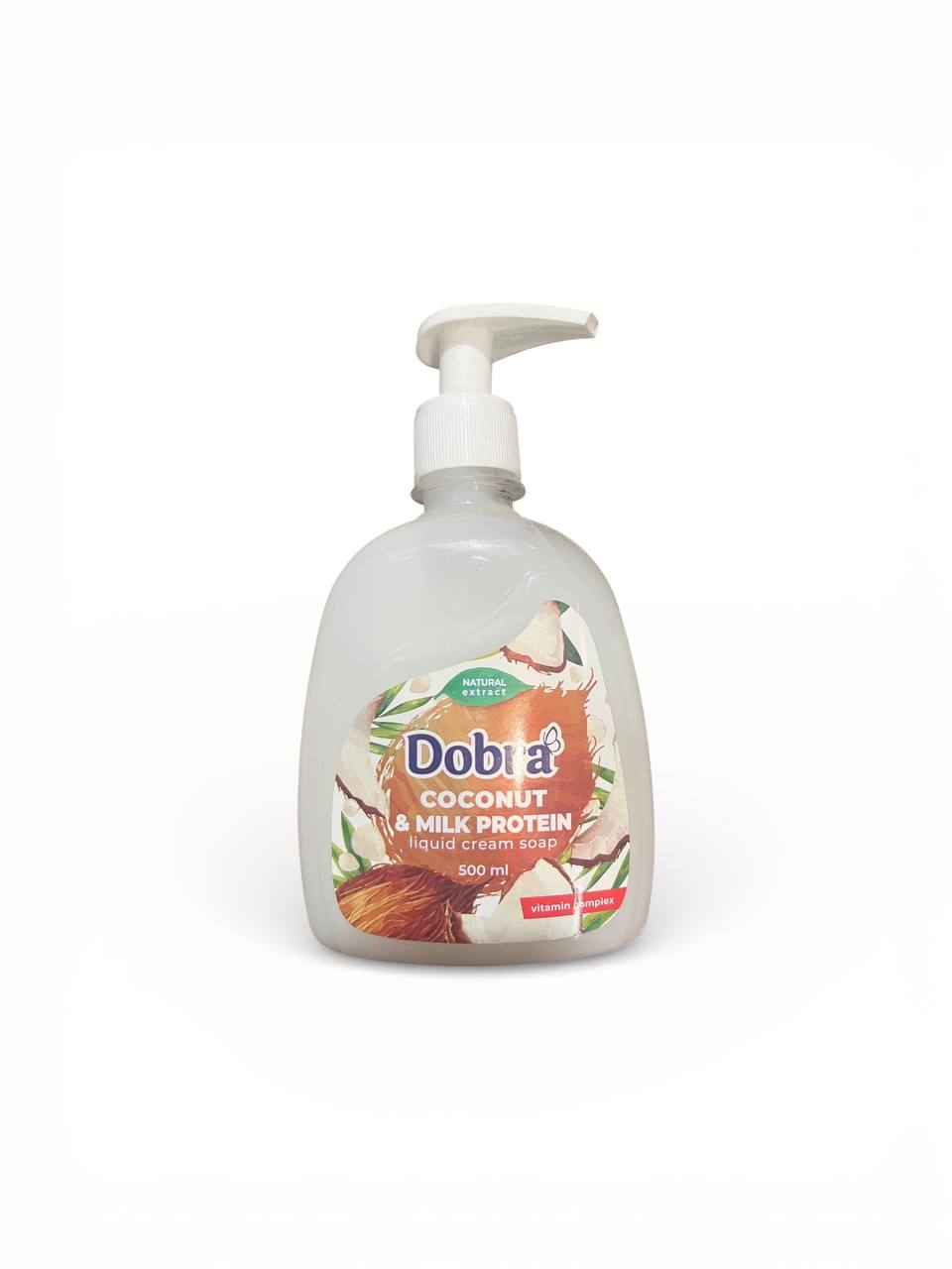 Рідке крем-мило Dobra 500мл з дозатором Кокос і молочний протеїн