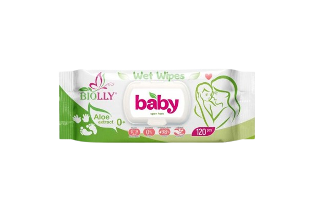 Серветки вологі Biolly Baby з клапаном, 120шт.